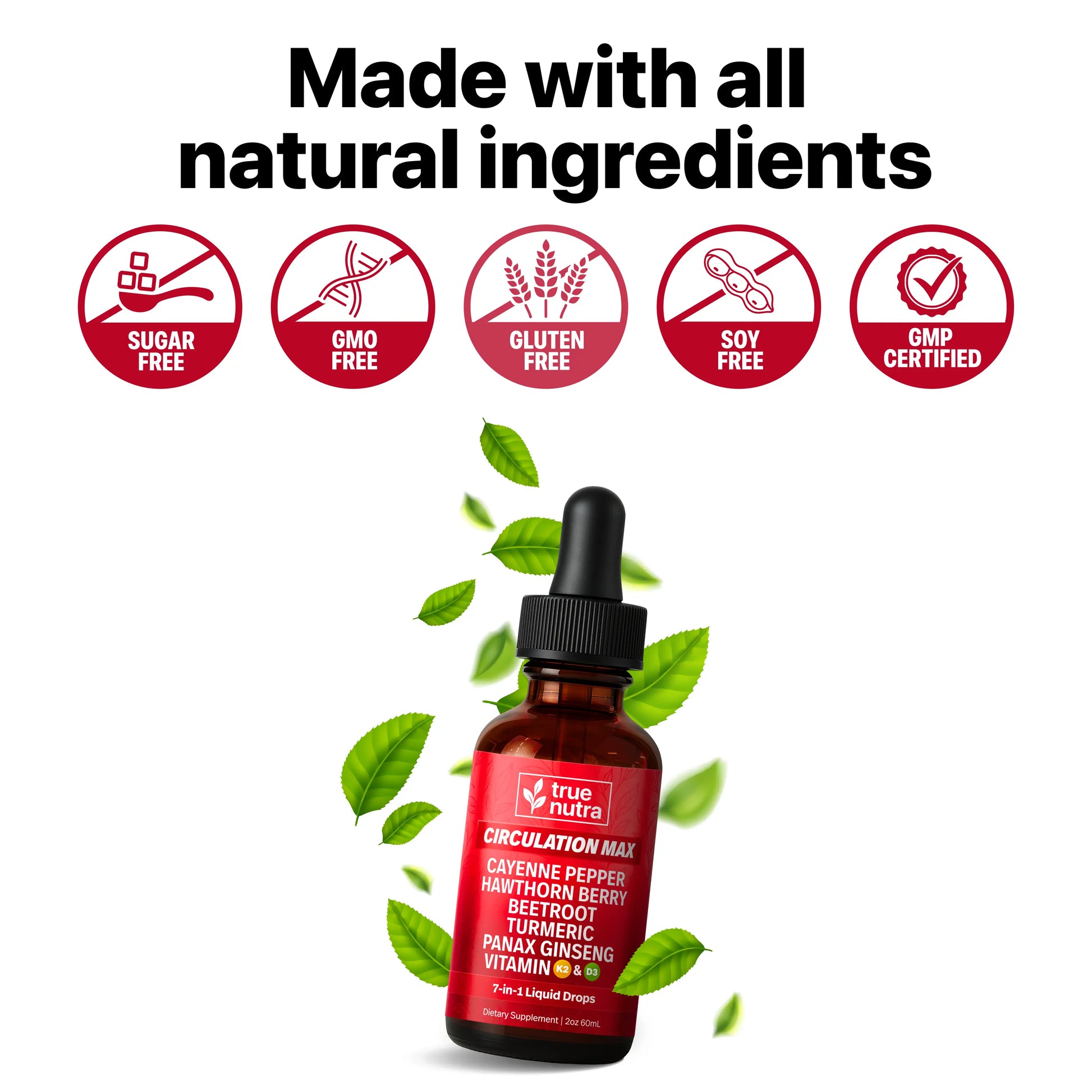 Yes. Circulation Max is made with 100% natural, non-GMO ingredients — and is free from gluten, soy, dairy, sugar, artificial colors, artificial flavors, and preservatives.